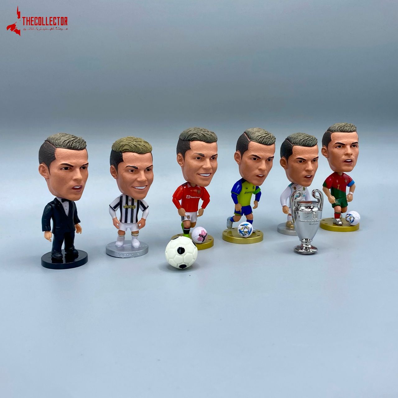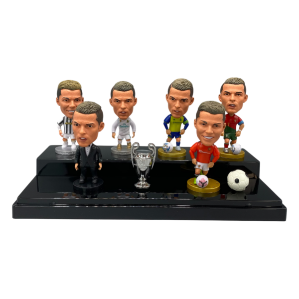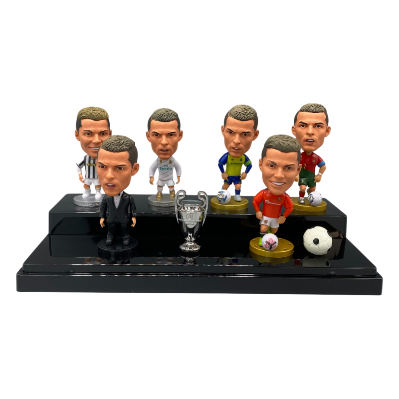 ست ۶ عددی فیگور رونالدو شامل شش فیگور با لباس باشگاه‌های منچستریونایتد، رئال مادرید، یوونتوس، تیم ملی پرتغال، النصر عربستان و یک فیگور رسمی با کت و شلوار است. این مجموعه با ارتفاع حدود ۷ سانتی‌متر برای هر فیگور، همراه با یک توپ، کاپ لیگ قهرمانان اروپا و استیج نمایشی عرضه می‌شود. انتخابی عالی برای کلکسیونرها و طرفداران کریستیانو رونالدو!